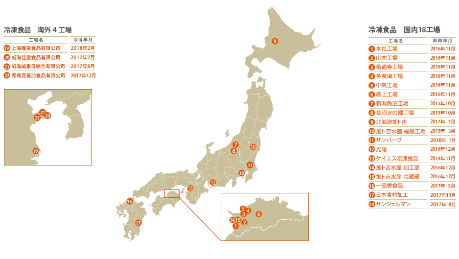 FSSC22000を取得している自社グループ全17冷凍・常温食品製造工場