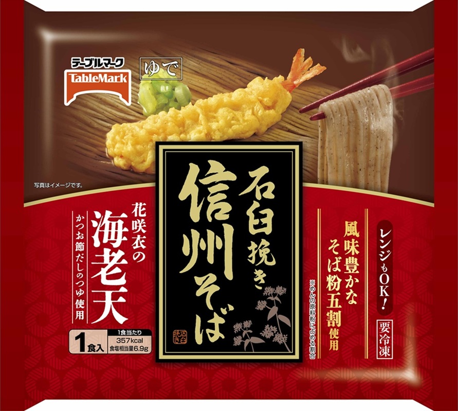 石臼で挽いたそば粉を5割使用し、風味豊かに仕上げました。食感とのど越しの良い、長野県で製造した信州そばです。暑い夏にはお湯を沸かさず、レンジで簡単に1玉からざるそばをお作りいただけます。