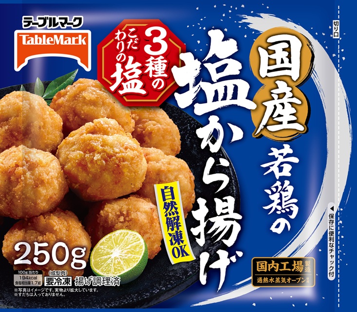 「国産若鶏の塩から揚げ」にしっかり味がついているので、ドレッシングだけに頼ることなく、野菜と一緒に十分楽しんでもらえます。