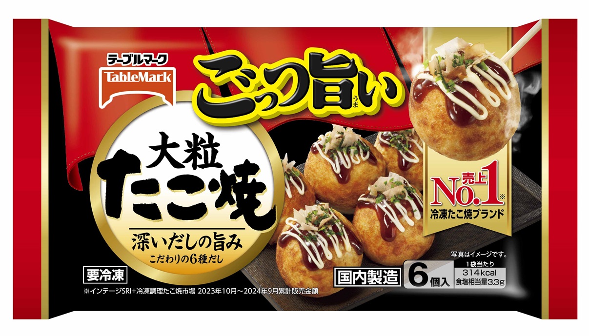 レンジ加熱した「ごっつ旨い大粒たこ焼」を並べてソース、マヨネーズ風ソースを塗り、(1)をのせる