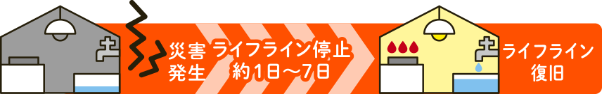 過去の経験によれば、災害発生からライフライン復旧まで1週間以上を要するケースが多くみられます。また、災害支援物資が3日以上到着しないことや、物流機能の停止によって、1週間はスーパーマーケットやコンビニなどで食品が手に入らないことが想定されます。このため、最低1日分~1週間分×人数分の食品の家庭備蓄が望ましいといわれています。