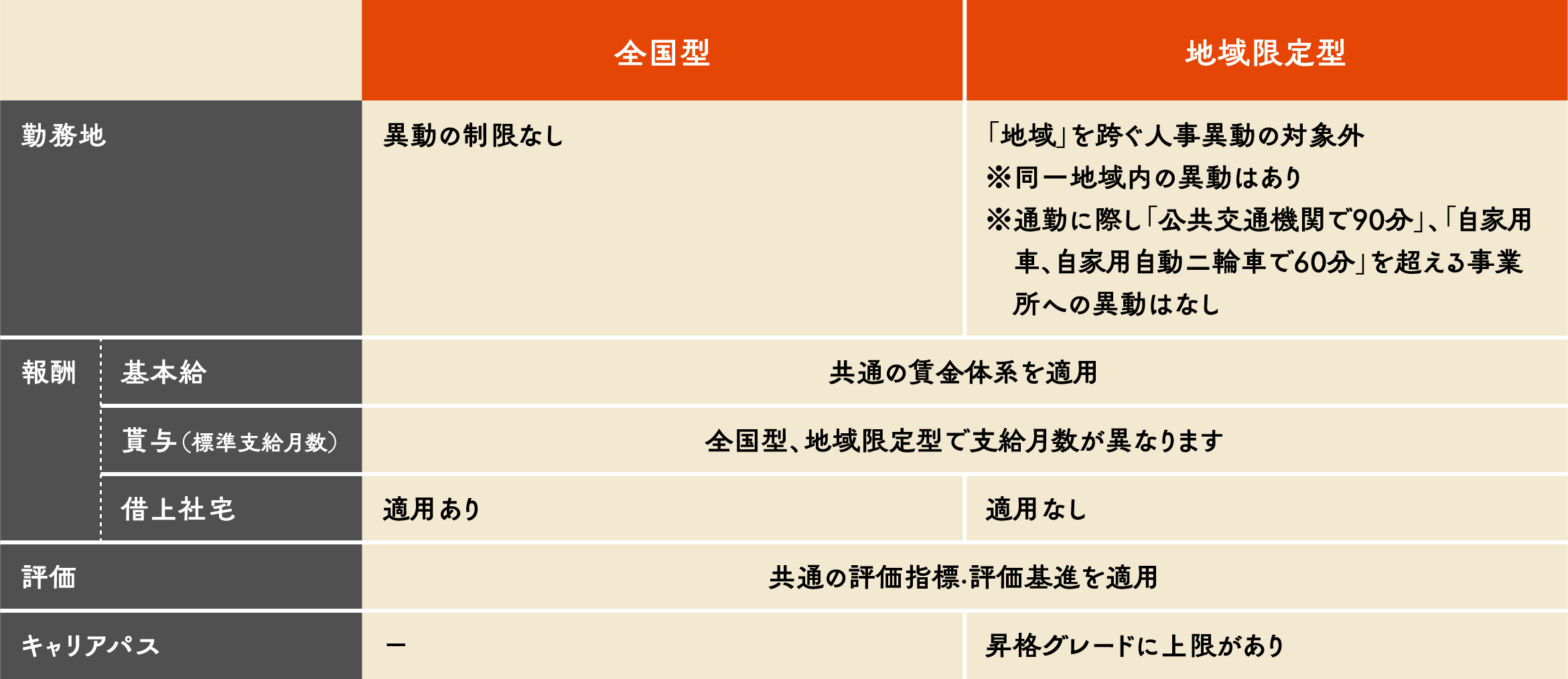 仕事と育児・介護の両立(ワーク・ライフ・バランス)を図りながら勤務する必要がある社員や、転勤を希望せず「その地で働きたい」という意向を持つ社員への対応として、「地域限定社員制度」を導入し、多様な働き方の仕組みを整備しています。