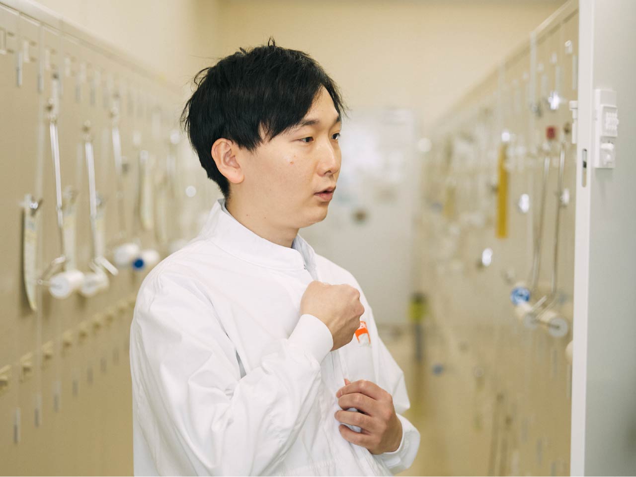 食べることが好きで、加えて学生時代は農学部で、アミノ酸の体内摂取に関する栄養制御について研究していたため、就職活動では食に関わる企業を主に検討していました。中でも冷凍食品分野は成長産業であると考え、テーブルマークの説明会に参加。そこで、技術系の先輩社員と話をする機会があったのですが、技術的な知識がたいへん深く、尊敬できる人だったので志望の気持ちが高まったのを覚えています。その後、自分でいろいろと調べたり、選考過程で話を聞いたりするうちに、製麺技術などテーブルマーク独自の高い技術力があることを知り、入社を決めました。