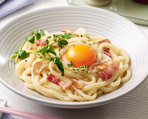 Instead of boiling in a pot, simply microwave frozen udon noodles for about three minutes and twenty seconds (600 W) to enjoy the taste of freshly cooked udon noodles.