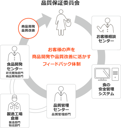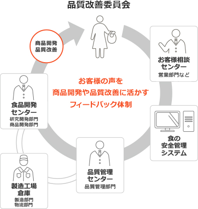 お客様相談センターと品質管理部門が連携し、品質管理システムを構築しています。お客様相談センターなどに寄せられる、お客様からのご指摘・ご意見を「声」として受け止め、積極的に商品作りや改善活動に反映していくためです。