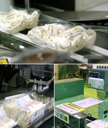 冷凍後は、うどんを包装する前に、金属検査とX線検査を行います。