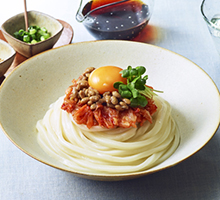 納豆キムチ釜玉風うどん