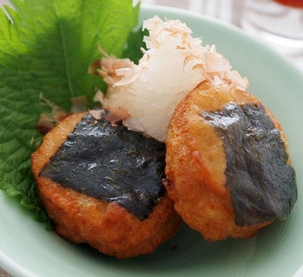 - 鶏肉(国産)、つなぎ(パン粉、粉末状植物性たん白)、しょうゆ、植物油脂、砂糖、粒状植物性たん白、のり、かつお節エキス、こんぶだし、チキンエキス調味料、たん白自己消化物、食塩、粉末しょうゆ、酵母エキス、衣(小麦粉、しょうゆ、粉末状植物性たん白、発酵調味料、たん白自己消化物、でん粉、こんぶだし、食塩、砂糖、酵母エキス、粉末しょうゆ)、揚げ油(なたね油)/加工デンプン、重曹、膨張剤、乳化剤、香料、カロチノイド色素、(一部に小麦・乳成分・大豆・鶏肉を含む)