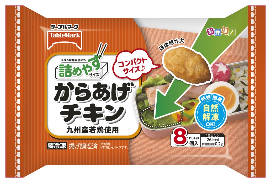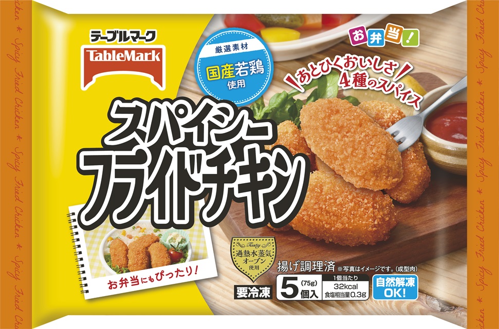 - 鶏肉(国産)、粒状植物性たん白、乳等を主要原料とする食品、植物油脂、豚脂、つなぎ(パン粉、粉末状植物性たん白)、砂糖、食塩、しょうゆ、酵母エキス、たん白加水分解物、おろしにんにく、香辛料/加工デンプン、増粘剤(加工デンプン)、着色料(カラメル、カロチノイド)、乳酸Ca、pH調整剤、グリシン、香料、ショ糖脂肪酸エステル、ソース〔砂糖混合異性化液糖、トマトケチャップ、小麦粉、ウスターソース、植物油脂、オニオンエキス調味料、トマトペースト、乳等を主要原料とする食品、しょうゆもろみ、ビーフエキス調味料、チキンエキス調味料、食塩、香辛料、酵母エキス/カラメル色素、増粘剤(加工デンプン、キサンタンガム)、pH調整剤、グリシン、香辛料抽出物、ショ糖脂肪酸エステル〕、揚げ油(パーム油)、(一部に小麦・卵・乳成分・牛肉・大豆・鶏肉・豚肉を含む)