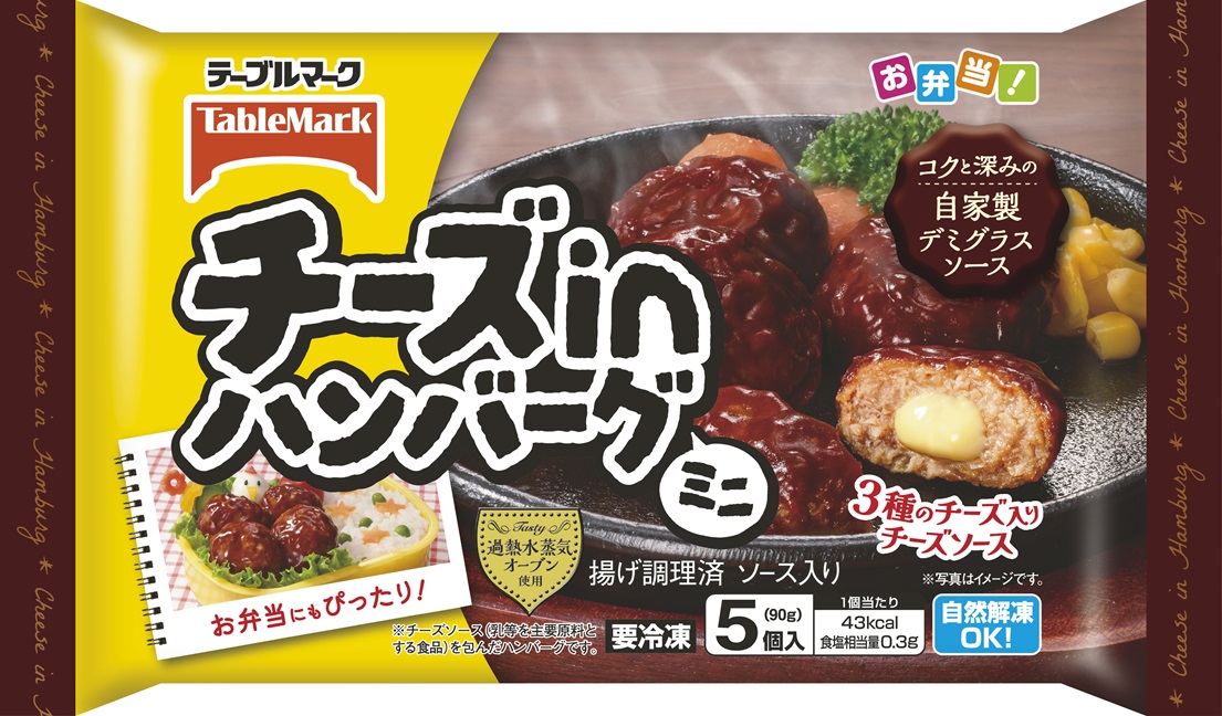 3種類のチーズ入りチーズソースを国産若鶏を使用した肉で包み込み、ふっくらジューシーに焼き上げました。じっくりと煮込んだ自家製デミグラスソースとも絡み合い、小さくても本格的な味に仕上げています。