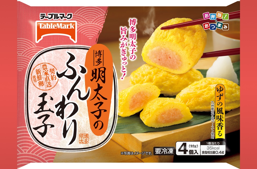 - 全卵(国内製造)、植物油脂、辛子めんたいこ、砂糖、でん粉加工品、食塩、魚醤、清酒、かつお節エキス調味料、ゆず皮ペースト、寒天、こんぶだし、酵母エキス、香辛料/加工デンプン、セルロース、増粘剤(増粘多糖類、加工デンプン)、調味料(アミノ酸等)、ソルビトール、乳化剤、pH調整剤、着色料(紅麹、カロチノイド)、酸化防止剤(V.C)、発色剤(亜硝酸Na)、香料、香辛料抽出物、(一部に小麦・卵・大豆を含む)