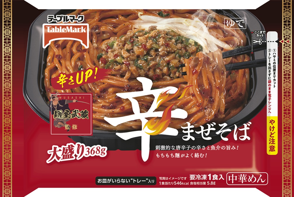 名店「麺屋武蔵」監修のもちもち中華麺に刺激的な唐辛子と魚介の旨みが効いたソースが特徴のまぜそばです。