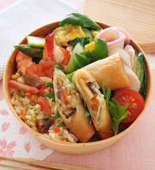 - うるち米(国内産)、全卵、野菜(ねぎ、にんじん、たまねぎ)、食用油脂、チャーシュー、かまぼこ、しょうゆ、チキンエキス調味料、食塩、砂糖、卵黄、ほたてエキス、ぶどう糖、魚醤(魚介類)、香辛料、香味油/調味料(アミノ酸等)、加工デンプン、トレハロース、着色料(カロチノイド、コチニール)、キシロース、香料、〔一部に小麦・卵・大豆・鶏肉・豚肉・魚醤(魚介類)を含む〕