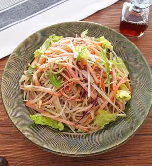 - めん〔小麦粉(国内製造)、そば粉、卵白粉/加工デンプン、増粘剤(グァーガム)〕、(一部に小麦・そば・卵を含む)