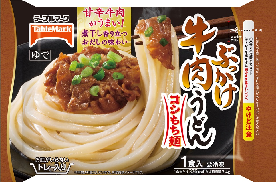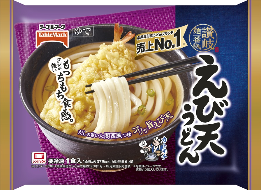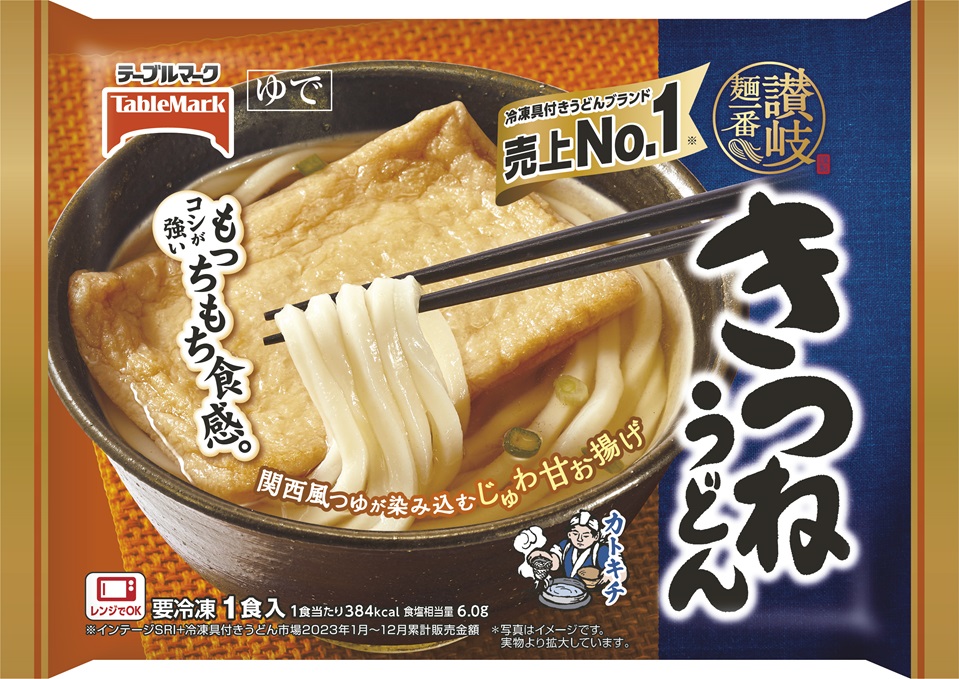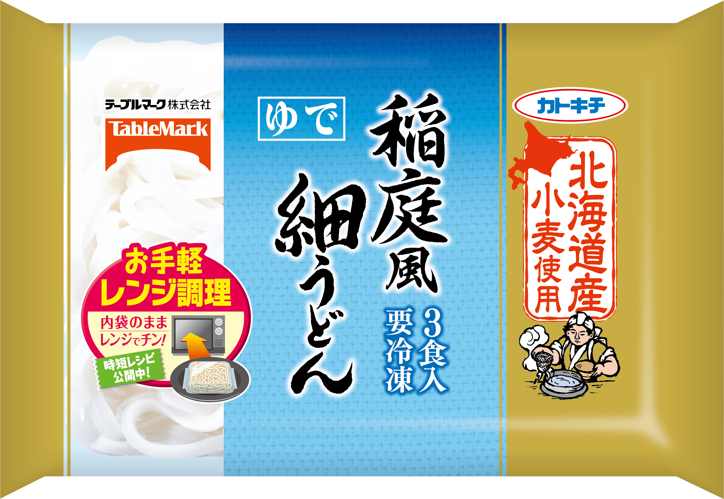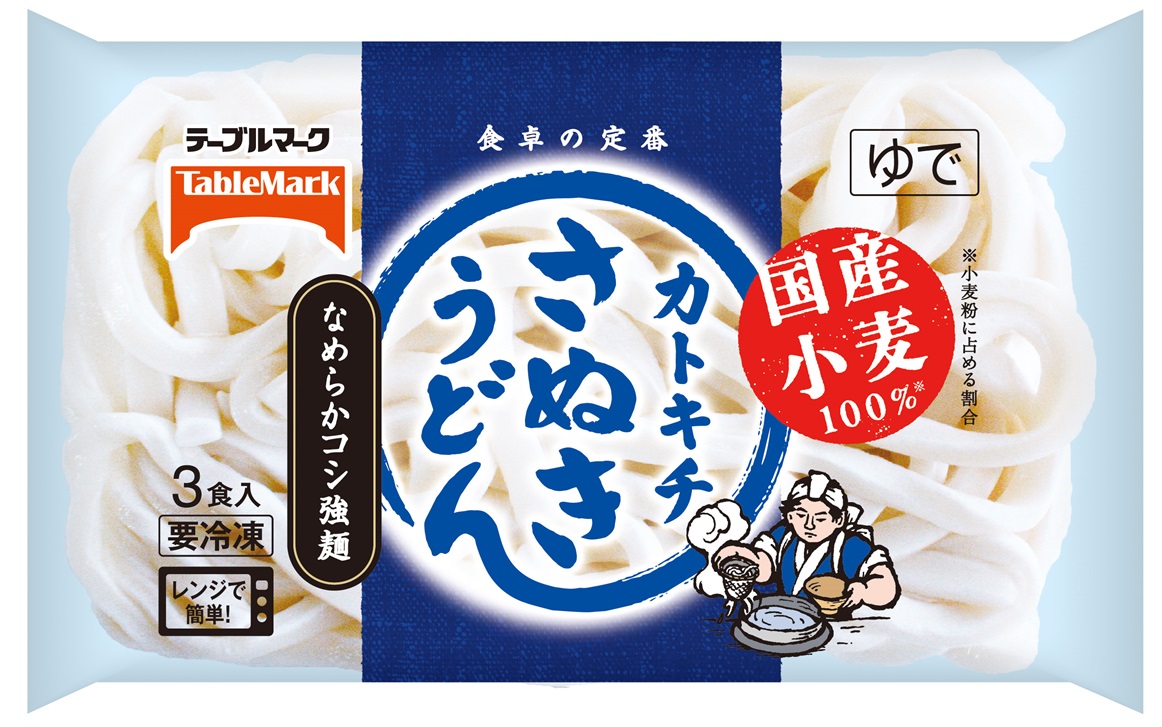 テーブルマークの定番商品。さぬきうどんらしい強いコシやもちもち感、なめらかなのどごしをレンジ調理で手軽に味わえます。こだわりの製法(包丁切り、大釜ゆで)と急速凍結で閉じ込めた打ちたてのおいしさをお楽しみください。