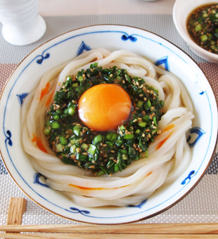 口当たりがやわらかでありながら、よりもちもちとした食感になるよう配合を見直しました。テーブルマーク独自の「綾・熟成法」と麺を一本ずつカットする「包丁切り」により丹念に作られたうどんはひと味違ったおいしさ。
