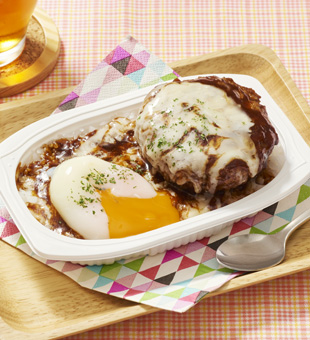 焼きうどんの上にカレーととろとろ卵をのせて召し上がれ。