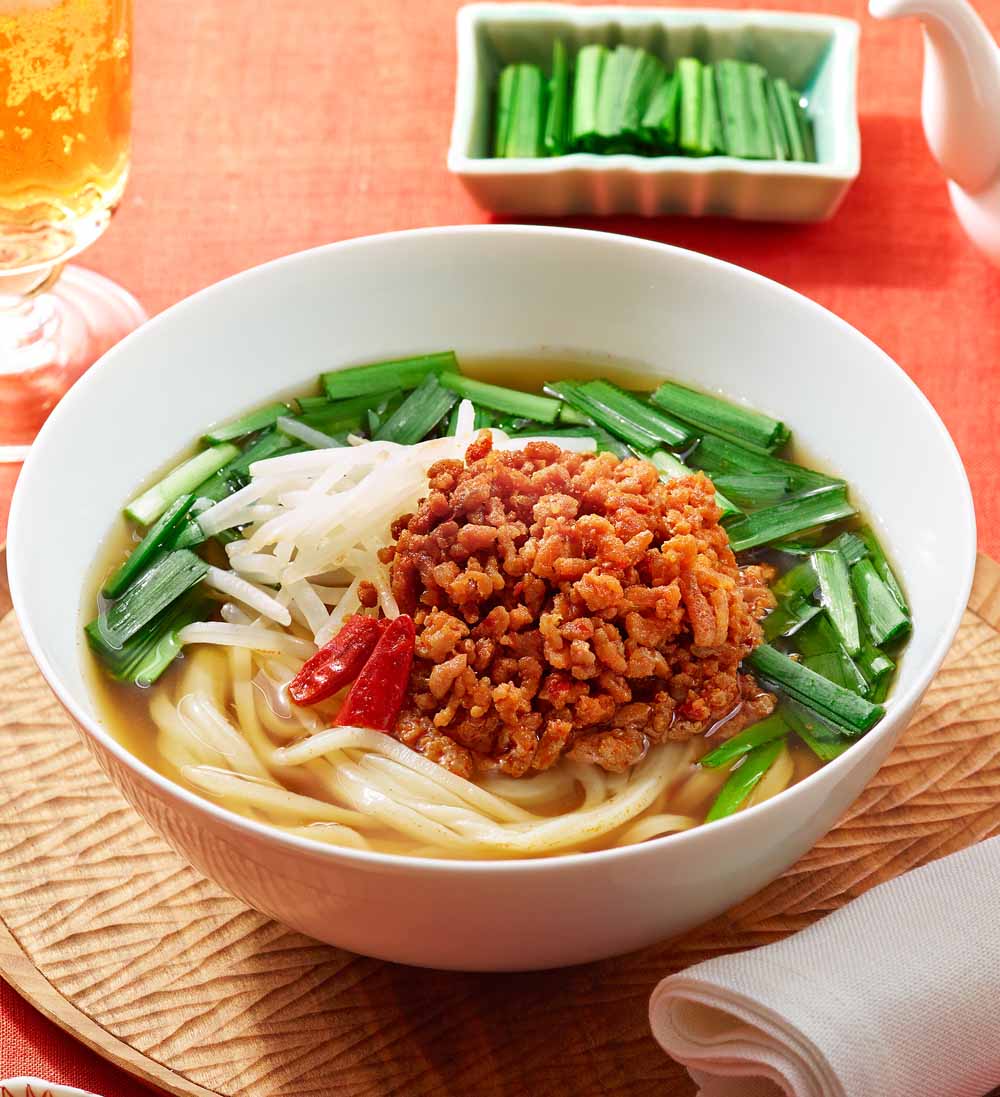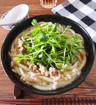 麻婆豆腐とうどん、組み合わせるとボリューム満点。麻婆豆腐はレトルトや素を使ってもOK!