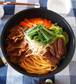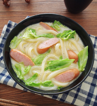 辛みとうまみがやみつきになるユッケジャンスープのうどんを簡単におうちでどうぞ。