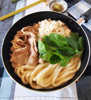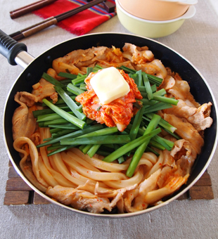 黄金コンビの「豚×キムチ」の煮込みうどん。