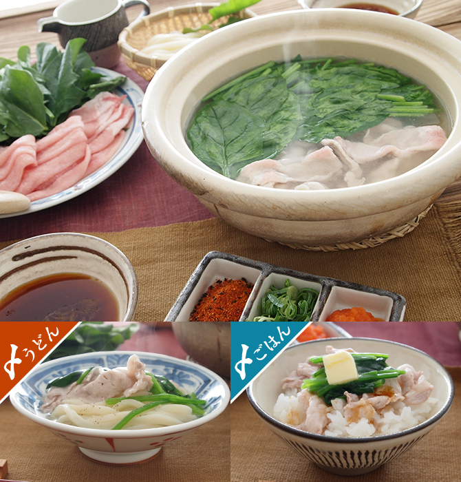 納豆つけだれの豚レタス鍋うどん