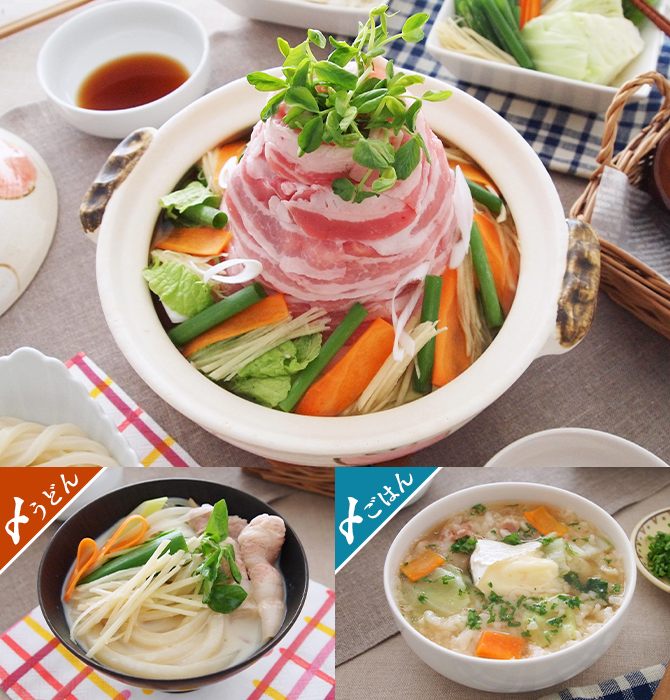 たっぷり豆苗と豚バラの豆乳鍋うどん