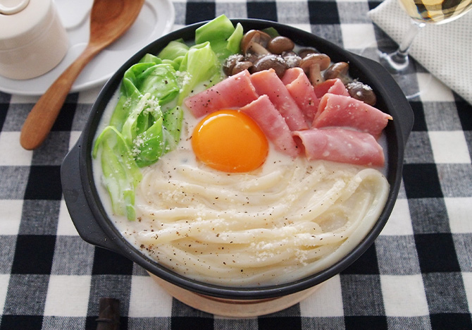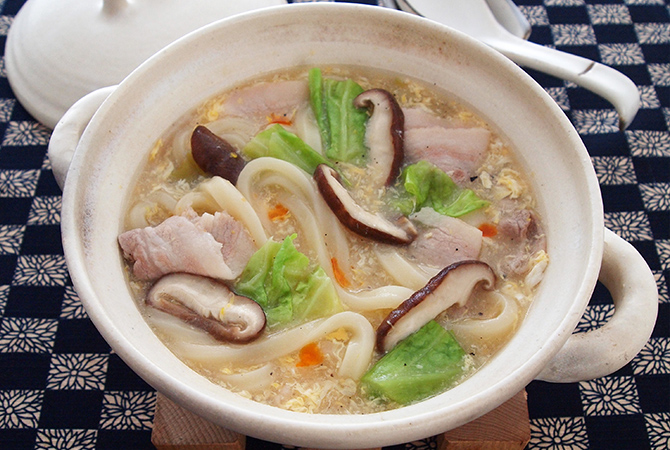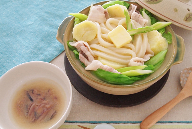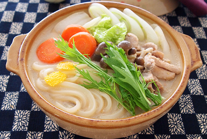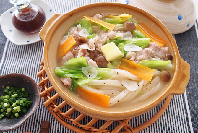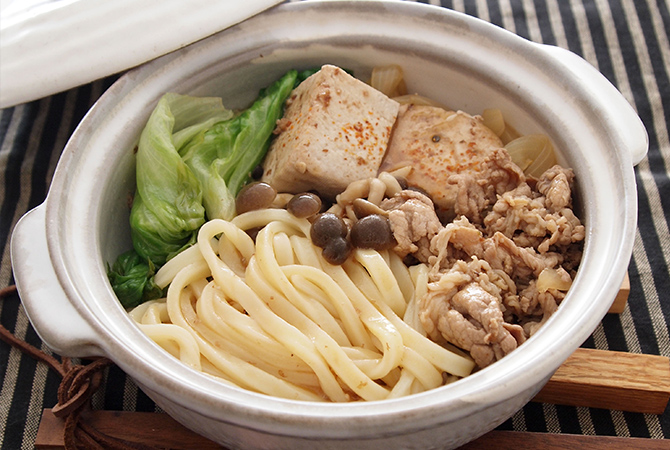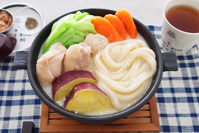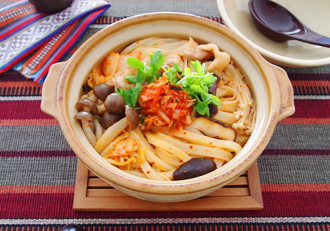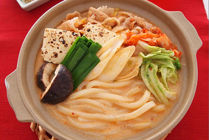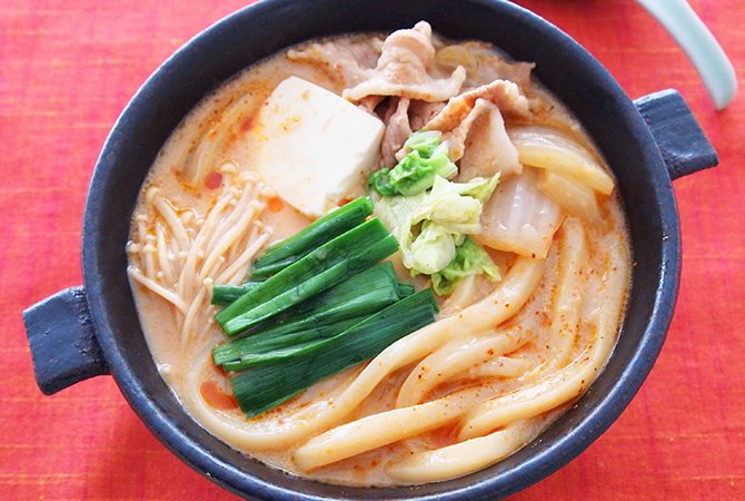 ハイブリッド鍋うどん(豆乳×キムチ)