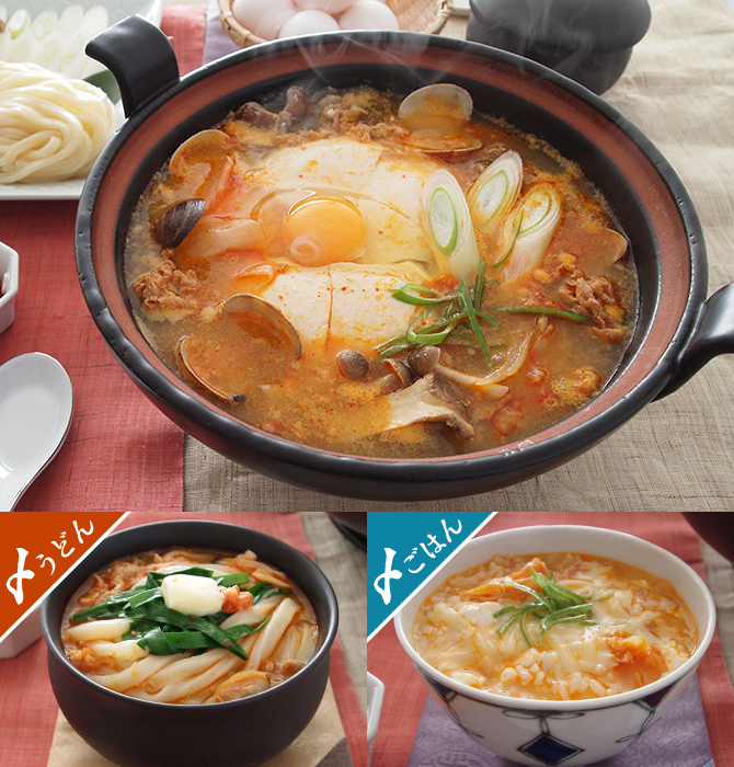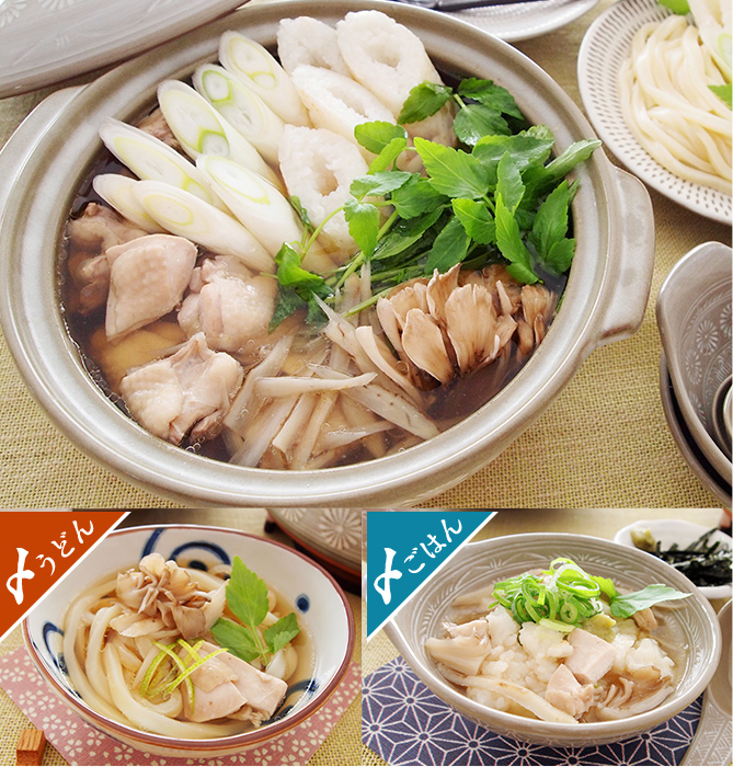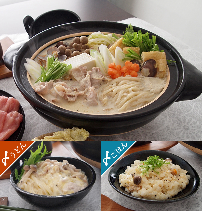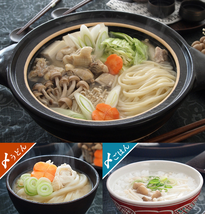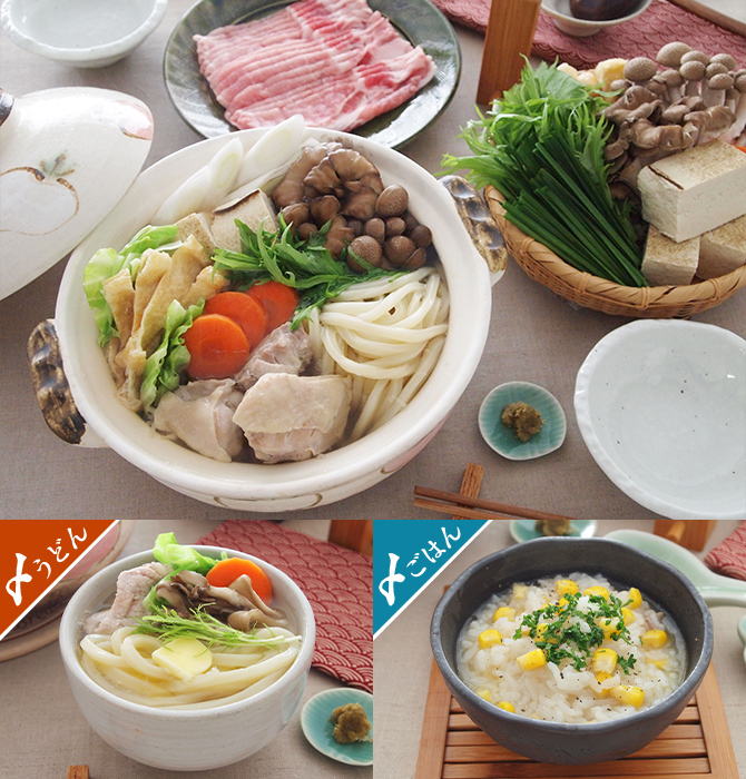 海鮮や鶏肉、豚肉、野菜、きのこ・・・など、煮込んだいろいろな具材を楽しんだ後のお鍋のつゆには、具材の旨みがいっぱい。 この旨みが溶けだしたおつゆを楽しみ尽くすことがこそが、お鍋の醍醐味だね!お鍋の後に少しアレンジして、お鍋とはちょっと違ったメニューに変えて「二度おいしい」を楽しむのもまたGOOD! 〆を何にするかも、お鍋のメニューを決めるのと同じくらい重要かも!最後までコシを楽しめる冷凍うどんで味しみしみのうどんを楽しんだり、旨みを吸ったリゾットや雑炊を味わったり、お鍋の季節を楽しもう!