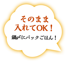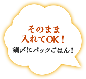 パックごはんなら、〆をする絶妙のタイミングで簡単に炊きたて(のおいしさ)ごはんが準備できるのじゃ。レンチンせずにそのまま入れてもOKだから、簡単に雑炊やリゾットが作れるぞ。