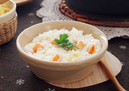 リゾットの具材にはえびのほか、お鍋用のベーコン、マッシュルームなどを残しておくとチーズとベストマッチ!
