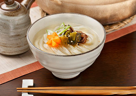 冷凍のままのうどんを入れる場合は、沸騰後1分くらい煮てね。