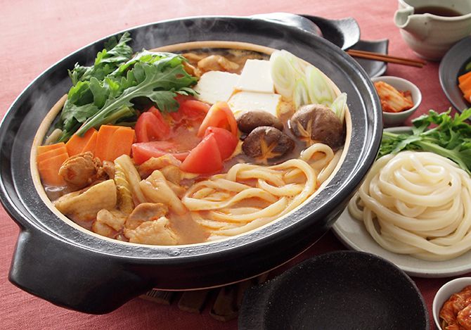 残った具材はうどんと一緒に食べやすいよう細切りして煮込み、お好みでキムチをプラスしてみて。