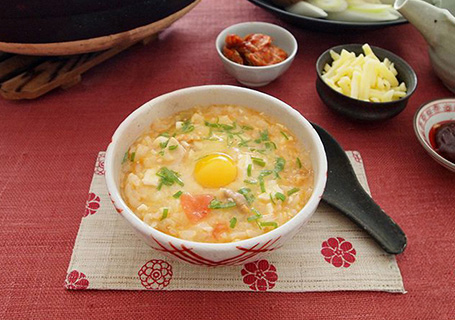 辛いお鍋の〆は、ちょっとまろやかに!ということで牛乳を加えるよ!スープが少なくなっている場合は、牛乳と一緒に鶏がらスープを加えてね。