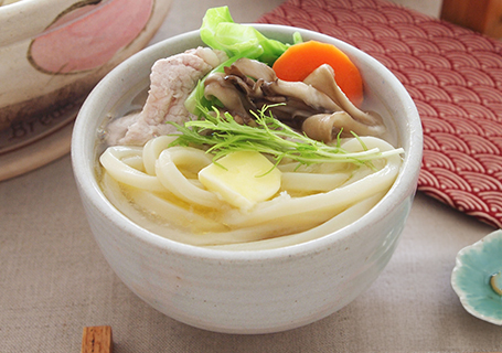 うどんに鍋の旨みをしみこませたいときは、冷凍のまま入れるのがおすすめだよ。