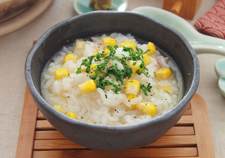 - 残ったスープにスイートコーンを汁ごと入れてひと煮立ちさせる。