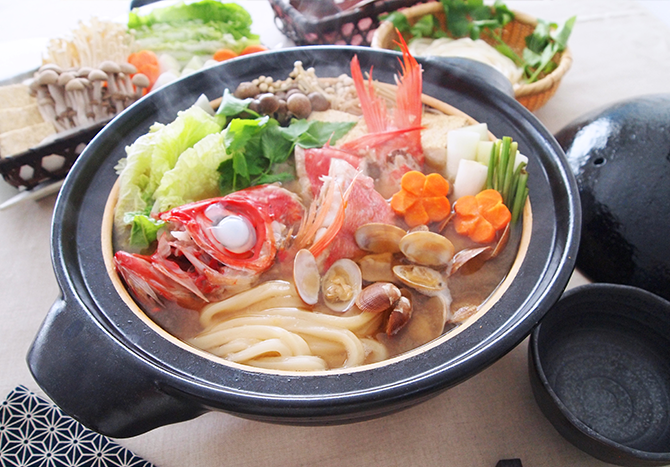 - 煮えたものからスープと一緒に取り分け、お好みで柚子胡椒などをプラスして召し上がれ。