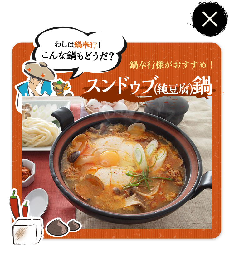 器にコチュジャン、一味唐辛子、おろしにんにくを入れ、鍋のスープで溶き、具材を入れながらスープと一緒に楽しもう。