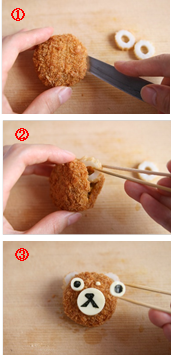 サクサクパン粉の丸い「北海道栗かぼちゃコロッケ」はくまちゃんにぴったりです。