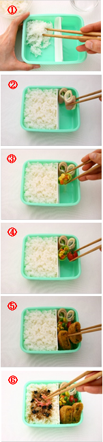 ①お弁当箱半分ほどのスペースにご飯を詰める