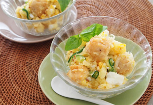 いつものポテトサラダに「国産若鶏の塩から揚げ」を入れると、コクと旨みが増し、ワンランク上の仕上がりに。