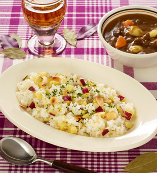 (1)にごはんと残りのバターを混ぜ合わせ、塩・こしょうで調味する