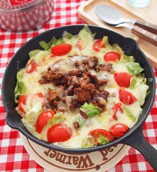 アツアツが楽しめる、スキレットを使ったタコライスです。