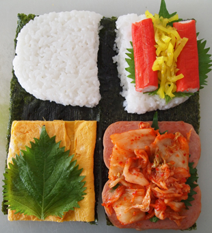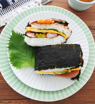 今回は、具材もごはんもたっぷり。ひとつで大満足のボリューミーな「わんぱくスパムおにぎり風」のキンパに仕上げました。