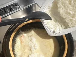 鍋を楽しんだ後はパックごはんを入れてカルボナーラリゾットに!