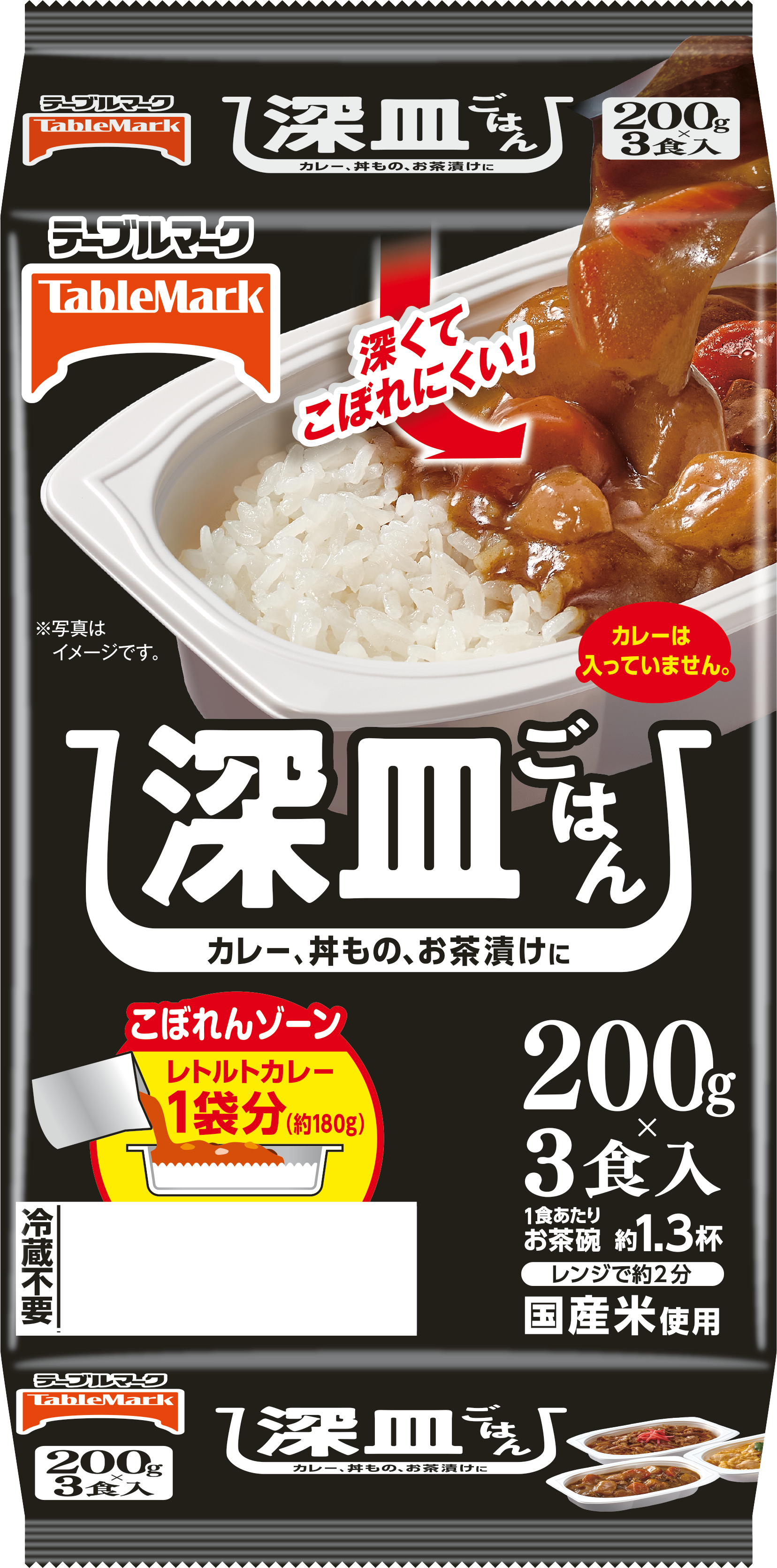 「深皿」なので、ごはんといっしょにレトルトカレーを1人分がっつり入れても安心。そのままレンチンできます!