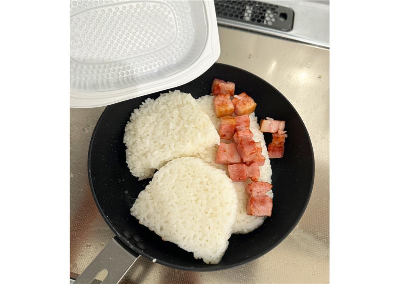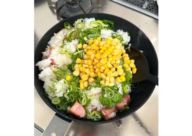 パックごはんはあらかじめ温めなくても、直接フライパンに入れて火にかければOKです!