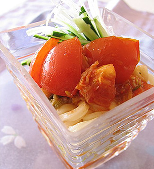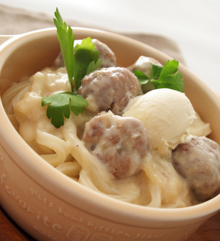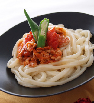 冷凍「さぬきうどん」を凍ったまま加え、再沸騰したら塩・こしょうと白菜の漬け汁を利用して味をととのえる