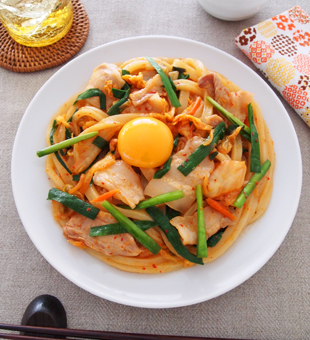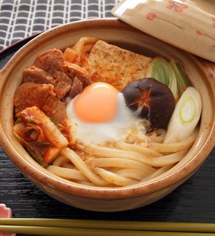 白菜漬けと豚バラの煮込みうどん