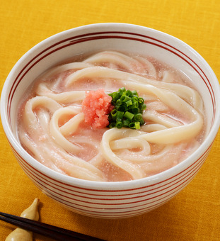 鍋で水と白だしを温め、凍ったままの「カトキチ丹念仕込み 本場さぬきうどん」と明太子1/2量を加える