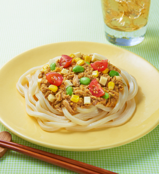 子どもの好みに合わせた、ツナを使ったカレー味のうどんです。